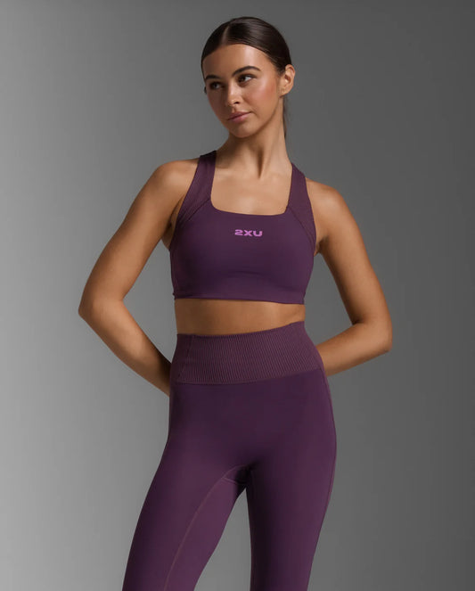 2XU Ribbed Longline Low Impact Bra - Port / Hyper Violet