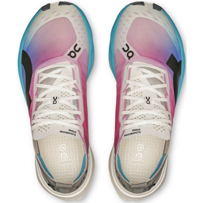 The On Cloudboom Strike women's road racing shoes provide explosive performance and energised bounce to conquer your race day with speed. Preventing overheating, the feather-light, single-piece mesh upper keeps you cool at faster paces.